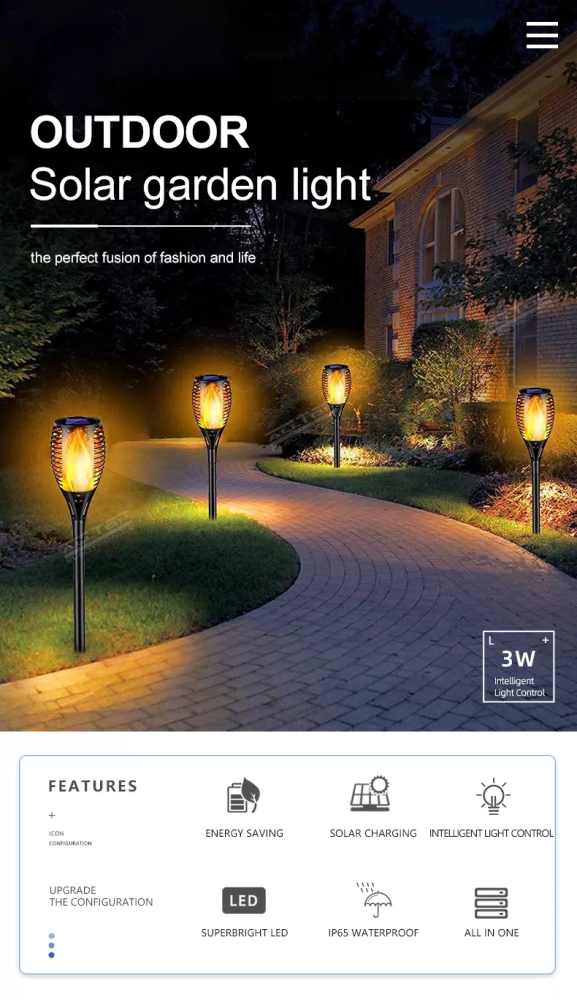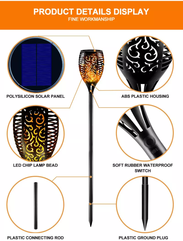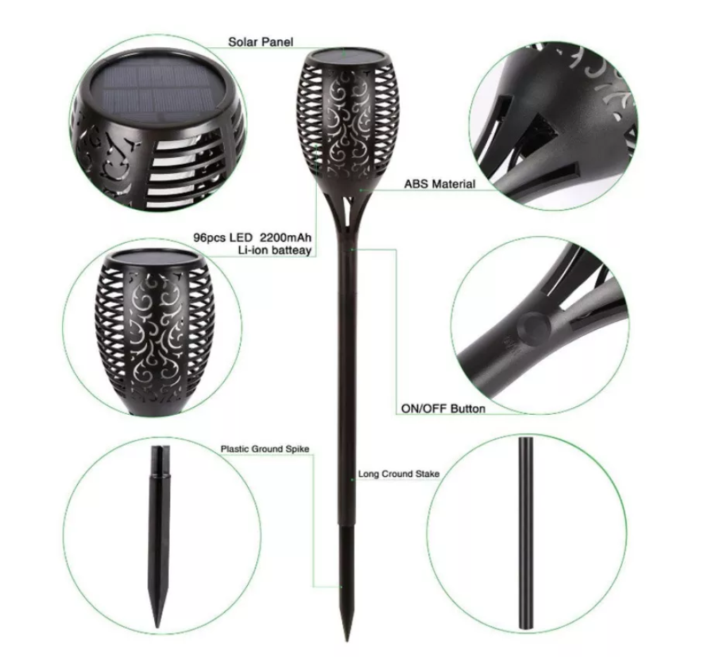 مصباح الشعلة المتوهج على الطاقة الشمسية , مقاومة للماء , مناسب للحدائق والممرات.