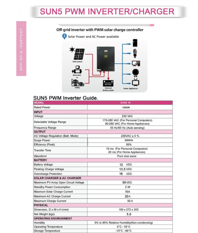محول Sun5 هايبرد 1000 واط 12 فولت 50 أمبير PWM