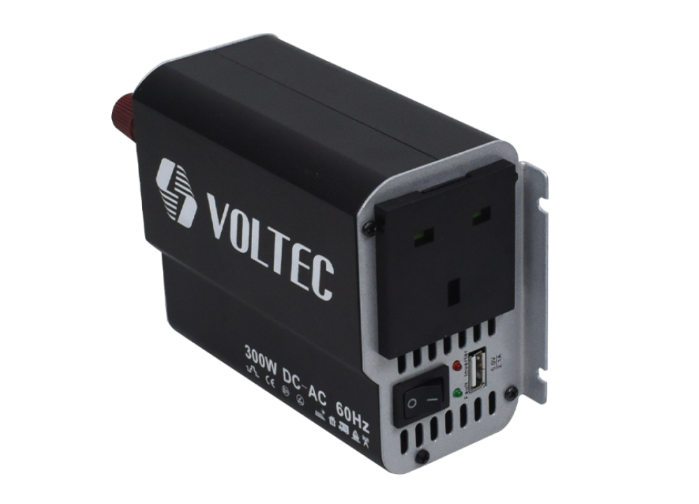 - يحول 12 فولت تيار مستمر إلى 220 فولت.