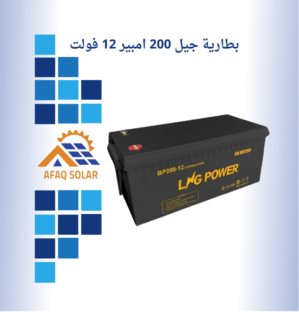 بطارية LNG POWER BP200-12 مزودة بسعة كبيرة تصل إلى 200 أمبير-ساعة (Ah)، مما يوفر تخزينًا فعّالًا للطاقة لفترات طويلة.
